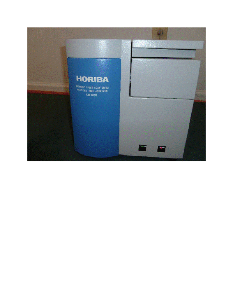 Horiba LB-500 Particle Size Analyzer Horiba LB500 used refurbished when shipped For detection of smaller particles- HORIBA LB-500 is a dynamic light scattering analyzer with a range from 3nm to 6um.
